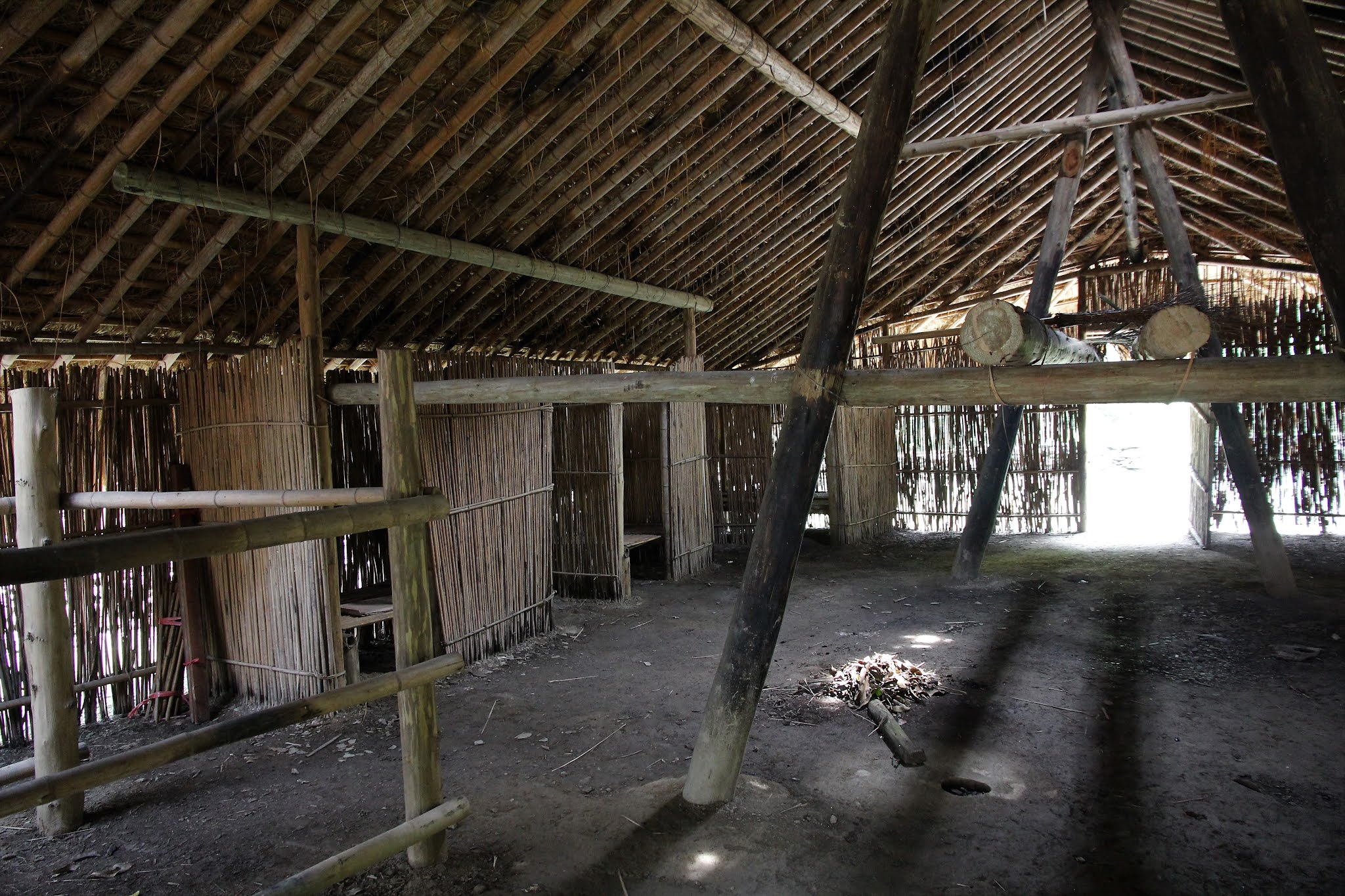 這間家屋從外觀上看來跟剛才看的沒有大分別,一樣是茅草屋頂,牆壁也是用石板築成。但屋內就跟鄒族家屋有明顯的分別,分別是地面鋪上石板、牆壁也用磚砌成牆面。