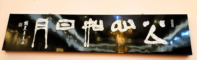 這是一件巨幅書法屏風作品,題目意思為我愛日異月新的大韓民國。